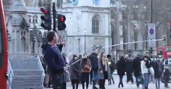 หนุ่มอังกฤษใช้ไม้เซลฟี่ยาวที่สุดในโลก เดินถ่ายภาพกลางกรุงลอนดอน