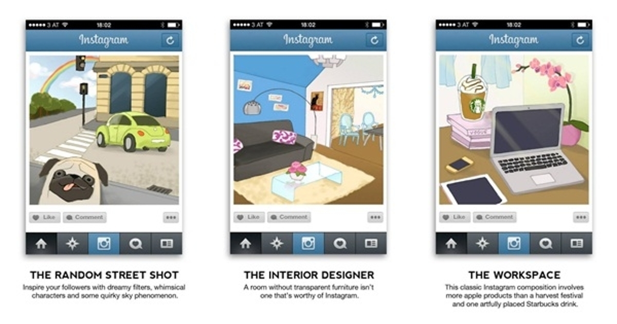 ปฏิเสธไม่ได้ว่าแอพพลิเคชั่นยอดนิยมอย่าง อินสตาแกรม (Instagram) เป็นหนึ่งในโซเชียลเน็ตเวิร์กอันดับต้น ๆ ที่คนทั่วโลกนิยมเล่นกัน เหมาะกับคนที่ชื่นชอบการถ่ายภาพและแสดงตัวตนของตัวเองผ่านภาพถ่ายในชีวิตประจำวัน ซึ่งใครเคยสังเกตบ้างไหมว่า รูปประเภทไหนที่คนนิยมแชร์ลงอินสตาแกรมมากที่สุด ? ถ้าไม่แน่ใจละก็ ลองมาเช็ก 12 แนวการถ่ายภาพสุดฮิตในอินสตาแกรมจากภาพประกอบที่ศิลปินหญิงนามว่า Joanna Zhou สร้างขึ้นมากันก่อนเลยดีกว่า โดยภาพตัวอย่างทั้งหมดที่เธอวาดขึ้นมานั้น เป็นสิ่งที่เจ้าตัวสังเกตจากฟีดคนที่เธอติดตาม รวมทั้งภาพถ่ายที่ตัวเองอัพโหลดเองครับ
