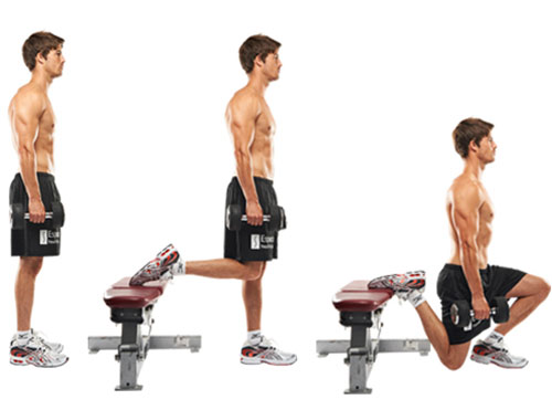 เริ่มจากยืนหันหลังให้ม้านั่ง ก้าวเท้าขวาไปด้านหลังแล้ววางเท้าบนม้านั่ง ต่อมาให้ทิ้งน้ำหนักไปที่ส้นเท้าซ้าย จากนั้นค่อย ๆ ย่อตัวขึ้น-ลง ทำให้ครบ 8 ครั้งแล้วสลับข้าง ฝึกจนครบข้างละ 3 เซต - Alternating Split Squat Jump