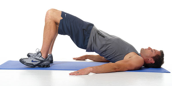 สำหรับการฝึกท่านี้ ให้เริ่มเซตท่าโดยการนอนราบลงบนพื้น วางแขนไว้ข้างลำตัว วางเท้าให้ห่างกันเล็กน้อย เมื่อพร้อมแล้วให้ยกสะโพกขึ้นจนสุด แล้วค้างไว้ 1 วินาที ก่อนที่จะค่อย ๆ ผ่อนลงสู่ท่าเริ่มต้น จึงนับเป็น 1 ครั้ง ควรฝึกให้ครบ 20 ครั้ง 4. Plank