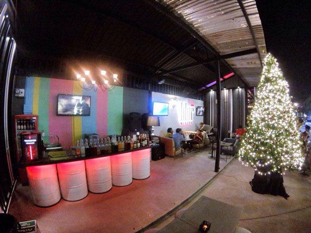 ร้านเหล้าที่ตกแต่งโดดเด่นด้วยสีสันสดใสของโต๊ะ-เก้าอี้ ที่ออกแบบด้วยถังน้ำมันเก่ามาผ่าครึ่งดัดแปลงเป็นโต๊ะสีสันสดใส ภายในร้านแบ่งพื้นที่ให้นั่ง 2 โซน คือบริเวณด้านล่างหน้าร้านและโซนดาดฟ้าเอาใจคนรักความชิล ผู้ที่ชื่นชอบบรรยากาศสบาย ๆ นับว่าเป็นอีกหนึ่งร้านที่เหมาะสำหรับนั่งจิบเครื่องดื่มในช่วงเย็น ส่วนเครื่องดื่มก็มีให้เลือกทั้งเหล้า เบียร์ และเหล้าปั่นแล้วแต่ชอบเลย