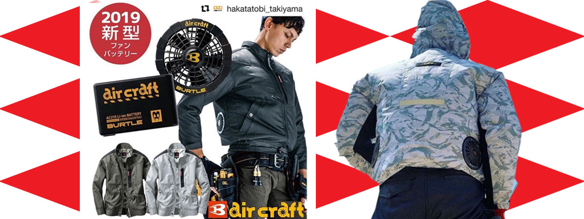 Burtle แบรนด์เสื้อผ้าชื่อดัง จากประเทศญี่ปุ่น ได้ผุดไอเดียผลิต และวางจำหน่ายแจ็คเก็ตที่มาพร้อมพัดลมระบายอากาศในตัวบริเวณด้านหลังเสื้อทั้ง 2 ข้าง เพื่อคลายร้อน ทั้งนี้เสื้อแจ็คเก็ตดังกล่าว ถูกผลิตขึ้นเป็นครั้งแรกประมาณปี 2004 ก่อนถูกปรับปรุงใหม่เมื่อปี 2009 ให้พัดลมสามารถทำงานได้นานถึง 8 ชั่วโมง จากเดิม 3-4 ชั่โมง (แบตเตอรี่ถอดเปลี่ยนได้) และสามารถสวมใส่ได้ทั้งชายและหญิง โดยวางจำหน่ายทางออนไลน์ ราคาเริ่มต้นที่ 20,000 เยน หรือประมาณ 5,800 บาท