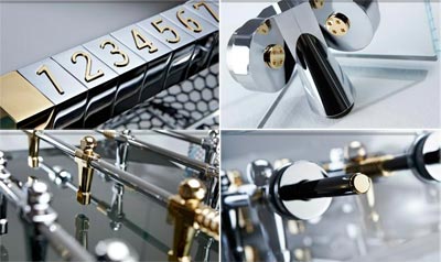 นอกจากนี้ส่วนต่าง ๆ ของโต๊ะ ล้วนประกอบขึ้นมาด้วยฝีมือคนล้วน ๆ ไม่ว่าจะเป็น การติดตั้งกระจกใสลงบนโต๊ะ ก้านจับที่ใช้ควบคุมตัวผู้เล่น ซึ่งต้องอาศัยความประณีตและพิถีพิถันมาก เพื่อให้ผลงานออกมาดีที่สุด