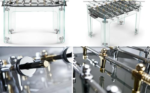 โดยโต๊ะฟุตบอล Teckell เป็นผลงานของนายกาเบรียลและนายดาวิเด้ อาเดรียโน่ สองพี่น้องชาวอิตาเลียน ที่ออกแบบให้กับบริษัทบี แลป (B. lab) ในประเทศอิตาลี ซึ่งหวังจะเปลี่ยนรูปโฉมของโต๊ะฟุตบอลไม้แบบเดิม ๆ ทิ้ง แล้วเนรมิตความหรูหราลงไปแทน ด้วยวัสดุจากกระจกคริสตัลและอลูมิเนียมอย่างดี จนอาจเรียกได้ว่ามันเป็นของตกแต่งบ้านที่สวยงามที่สุดชิ้นหนึ่งเลยทีเดียว