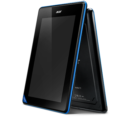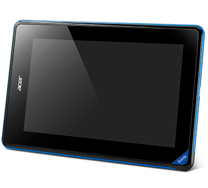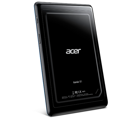Acer Iconia B1-A71 แท็บเล็ตแอนดรอยด์ 4.1 Jelly Bean พร้อมหน้าจอขนาด 7 นิ้ว WSVGA ความละเอียด 1024 x 600 พิกเซล ใช้หน่วยประมวลผล Mediatek (MTK 8317T) แบบ dual-core ความเร็ว 1.2GHz, แรม 512MB มีหน่วยความจำภายใน 8GB และรองรับการ์ดความจำภายนอก MicroSD สูงสุด 32GB มีกล้องหน้าความละเอียด 0.3 ล้านพิกเซล รองรับการเชื่อมต่อ Wi-Fi 802.11 b/g/n, Bluetooth 4.0, GPS และแบตเตอรี่ความจุ 2,710 mAh