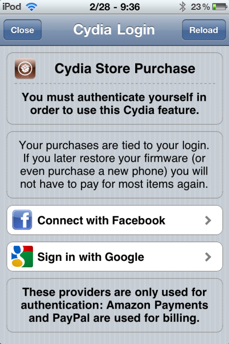 Cydia ให้โหลด App เหล่านี้ ฟรี และถ้าเกิด Developer คนเขียนอยากจะขายก็สามารถทำได้ด้วย ซึ่งจะมีระบบ Username ที่ผูกกับ Facebook และ Google Account เพื่อบันทึกว่า User แต่ละคนซื้อ App อะไรไป ตรงนี้จะเหมือนกับ AppStore เกือบจะทุกประการเลยครับ
